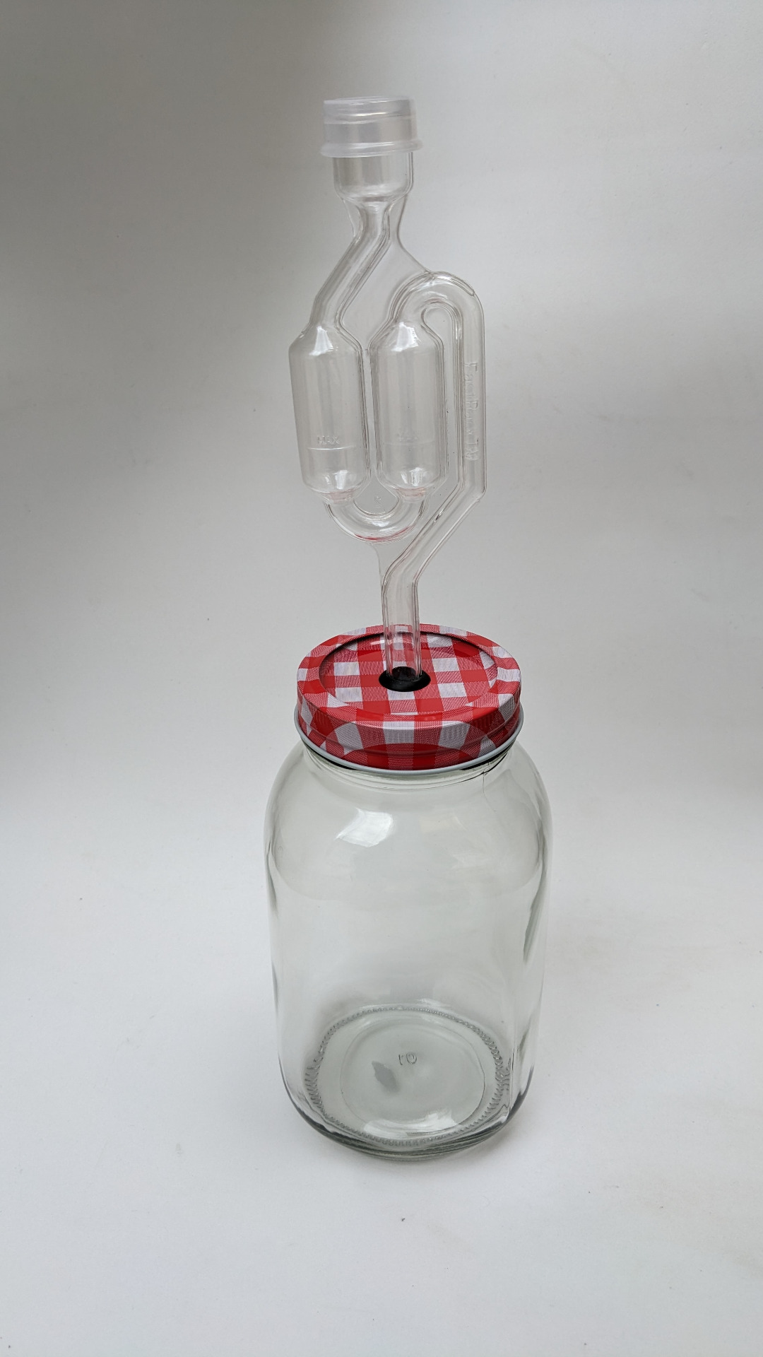 —Fermentador de vidrio con capacidad de 1 litro.